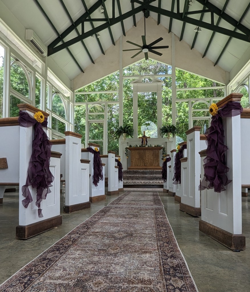 The Glass Chapel is best suited for intimate gatherings for up to 85 guests. However our expansive grounds will accommodate tents for larger groups. In addition to the Glass Chapel, there is a small outdoor Chapel and several fully furnished cabins available for rent. Each accommodation includes a kitchen, living/entertaining area, bedroom and full bath. You decide what features you need, whether it’s full use of the property including table setup or select locations. We want you and your guests to enjoy your time at The Preserve. Our pricing is based on the type of event and number of guests. If interested, please send us a note or call us at 828-289-5930 including as much detail as possible about your event.