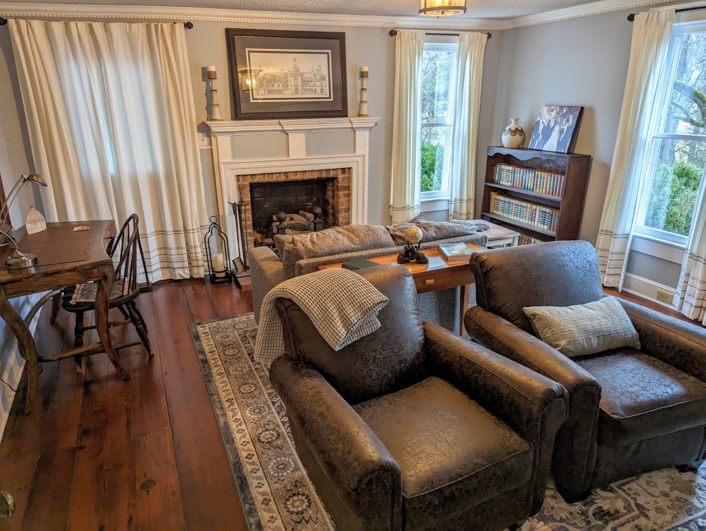 The 19th century Farmhouse includes a spacious event room, lounge area, private meeting room, as well as a guest quarters. The separate private guest quarters features an open kitchen and living room, two bedrooms, two full baths, and deck. Visit the Farmhouse Guest Quarters to learn more about this charming vacation rental.